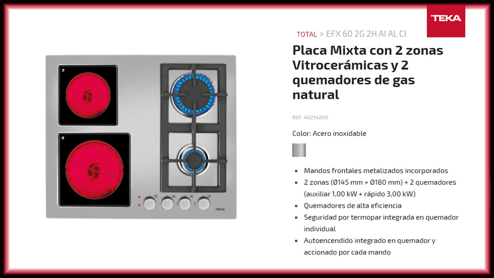 La placa de la que hablaremos ahora se trata de una mixta, el modelo EFC 60 2G 2H AI AL CI y pertenece a la colección Total.