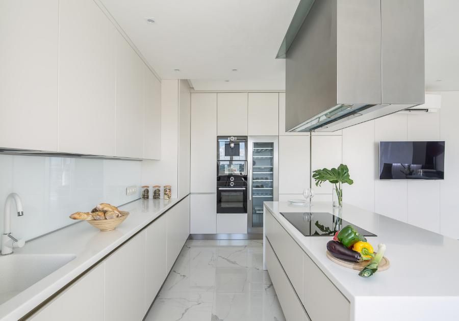 Otro factor relevante en este tipo de cocinas es la elección de materiales. En las cocinas actuales se utilizan superficies resistentes, fáciles de limpiar y pensadas para soportar el uso diario. Encimeras duraderas, frentes de muebles con acabados lisos y sistemas de apertura cómodos forman parte de las soluciones más utilizadas. Además, los materiales modernos permiten crear espacios visualmente ordenados que transmiten sensación de amplitud.